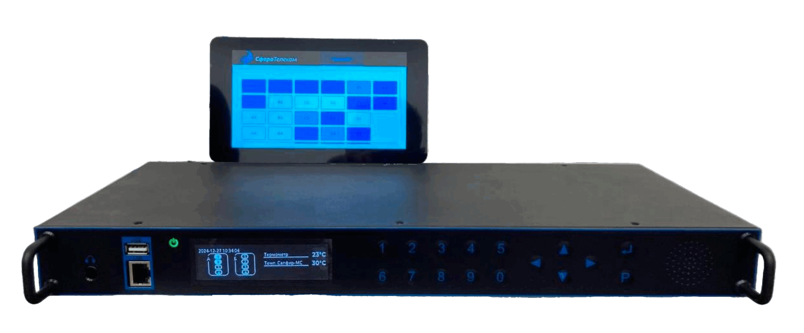 Сапфир-МС устанавливается в телекоммуникационный шкаф и занимает не более 1U. Сапфир-МС в соответствии с модификациями может иметь вынесенный